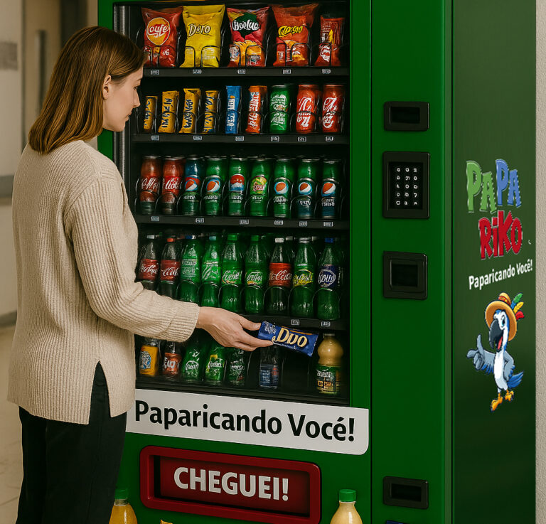 Nossa máquina de autoatendimento foi criada para levar praticidade, sabor e alegria ao seu dia a dia. Ideal para condomínios, empresas, hospitais, shoppings e muito mais, ela oferece uma seleção personalizada de bebidas, lanches e doces, tudo com um simples toque.